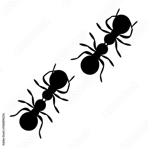 Two ant silhouettes on a white background, simple black vector image