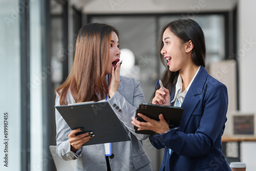 Two Asian businesswomen working together, meeting and discuss of new business project, professional people.