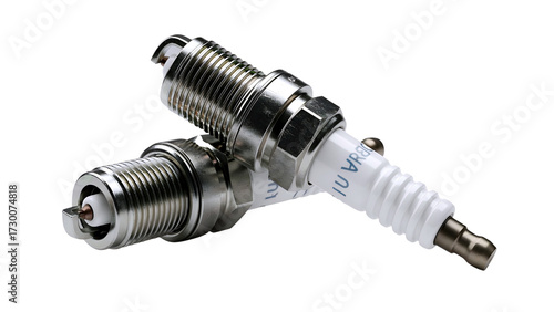 Two automotive spark plugs isolated on transparent background