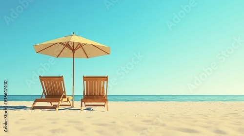 Two Beach Chairs Under a Beach Umbrella on a Sandy Beach