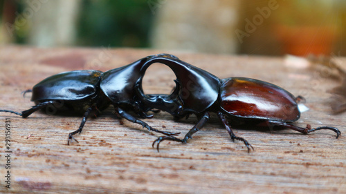 Two beetles are fighting against each other.
