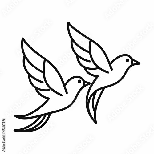 Two birds are flying black vector on white background.