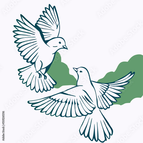 Two Birds in Flight, Line Art Illustration
