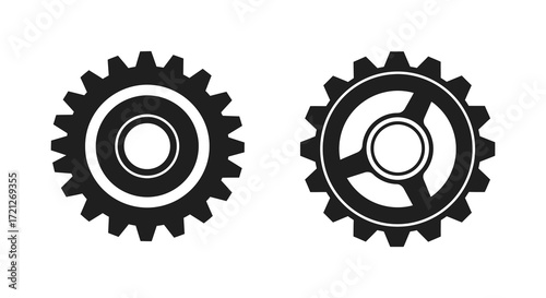 Two black and white gear icons isolated on a white background