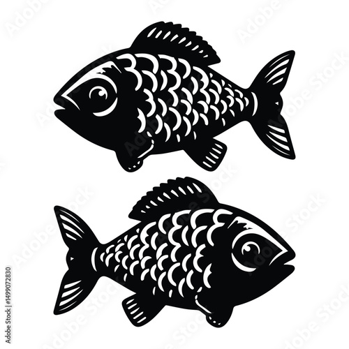 Two black and white silhouette fish illustrations vector art in adobe illustrator