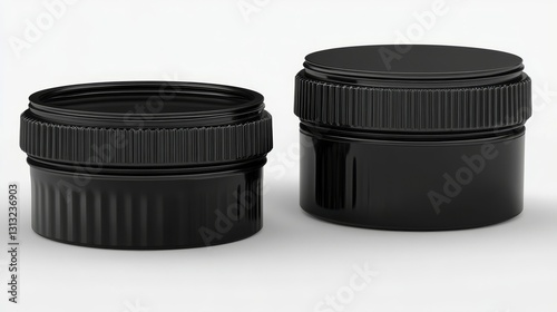 Two black cosmetic jars set against a plain white backdrop