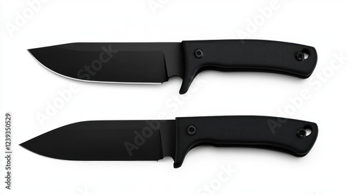 Two black knives, studio shot, white background, product photography