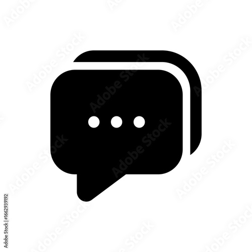 Two black speech bubbles stacked with three white dots indicating conversation or message pending state