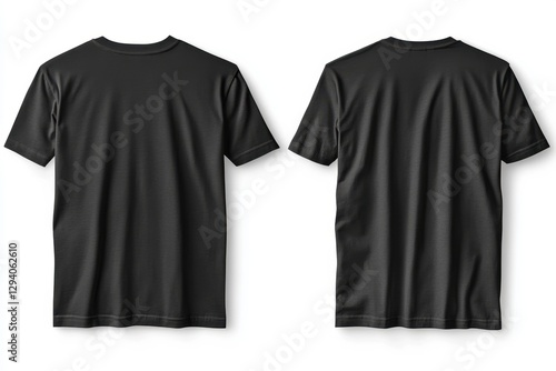Two black t shirts on a white background showcasing back design for apparel mockup and fashion presentation with studio lighting
