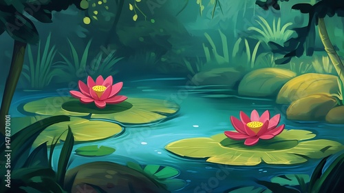 Two blooming lotus flowers a shared pond symbol of harmony shared wisdom and friendship in spiritual balance