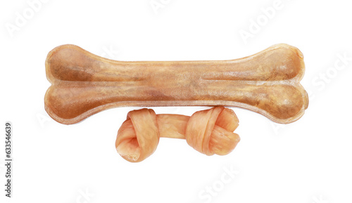 Two bone dog treats isolated on white, top view