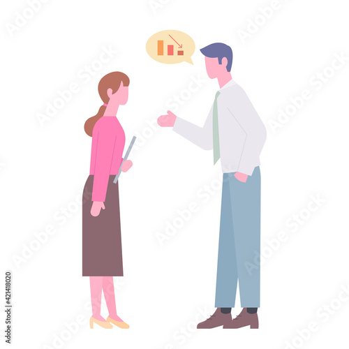 Two business people are meeting and having a conversation. flat design style minimal vector illustration.