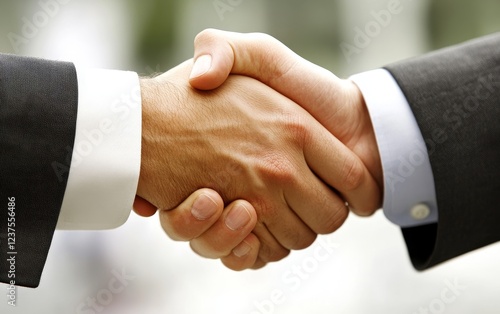 Two business professionals shaking hand in a professional setting, symbolizing agreement and partnership