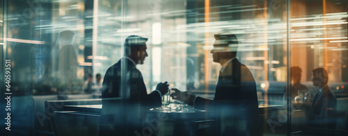 two businessmen talking in the office at the table on a blurred background, legal AI