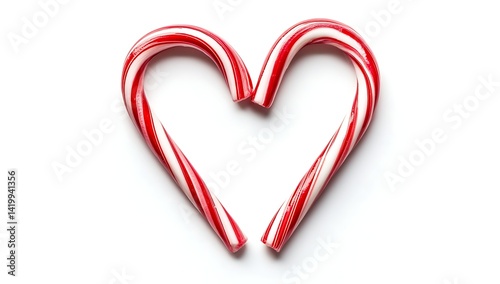 Two candy canes crossed together to form a heart shape, isolated on a white background