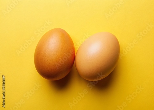 Two Chicken Eggs Isolated on Vibrant Yellow Background - High-Resolution Stock Photo