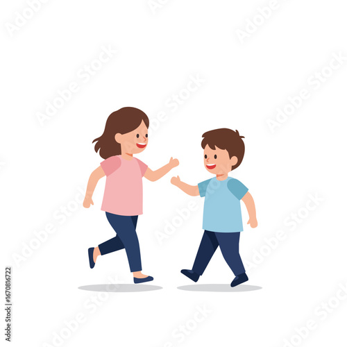 Two children playing happily with casual clothes and joyful expressions in simple vector illustration design