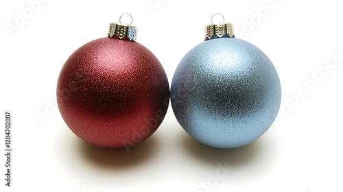Two Christmas Ornaments In Red And Blue With White Background