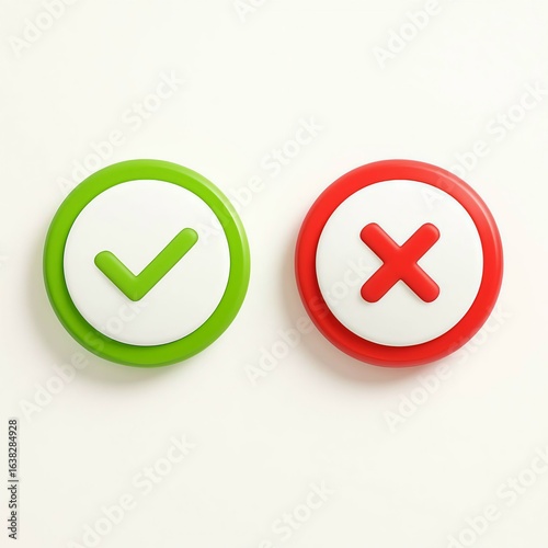 Two circular buttons one with a green checkmark and the other with a red cross symbol