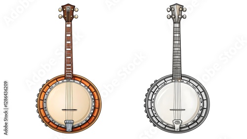 Two Classic Banjos Side by Side – Traditional String Musical Instruments with Wooden and Metallic Finishes