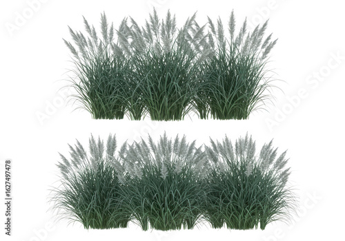 Two clumps of tall ornamental grass isolated on transparent background