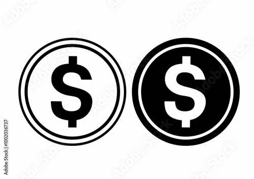 two coin icons with a dollar symbol ($). The left coin has a white background with a black outline, while the right coin is black with a white dollar symbol and rim.