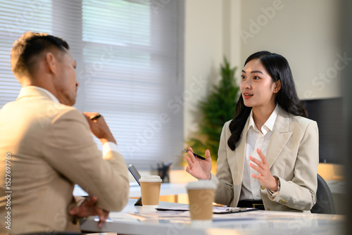Two colleague discussion on office workplace