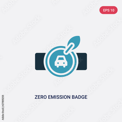 two color zero emission badge vector icon from transport concept. isolated blue zero emission badge vector sign symbol can be use for web, mobile and logo. eps 10