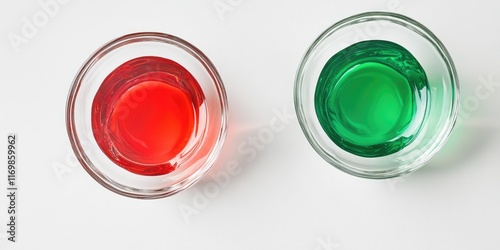Two colorful buttons in glass holders, representing red and green traffic lights.