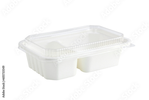 Two Compartments White Paper Lunch Box with Clear Cover isolated on white background with clipping paths
