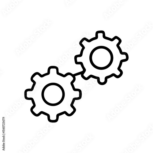 Two connected gears in a minimalistic black and white design