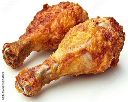 Two Crispy Fried Chicken Drumsticks on White Background Delicious Food
