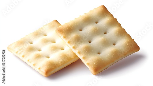 Two Crunchy Crackers Isolated on White Background Perfect for Snacks or Appetizers