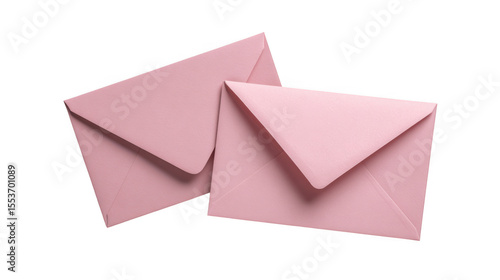 Two delicate pink envelopes artfully arranged on a transparent background isolated on transparent background