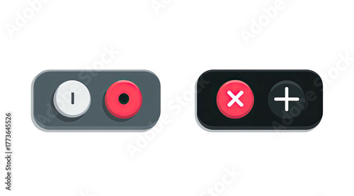 Two distinct digital interface controls, one with power and record, other with cancel and add