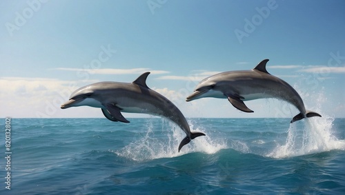 two dolphins jumping