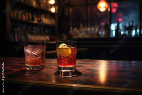 two drinks at a bar with no people around