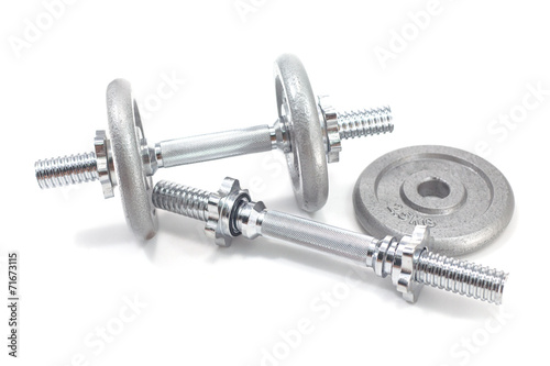 Two Dumbbells and plate isolated on white background