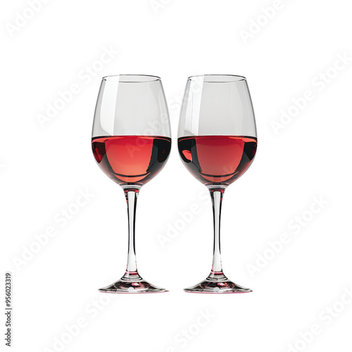 Two elegant red wine glasses filled with rich, deep ruby wine, perfect for any celebration or romantic dinner setting.