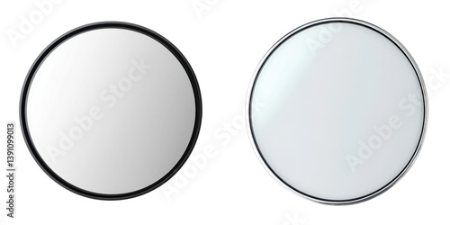 Two Elegant Round Mirrors with Black and Silver Frames for Decor