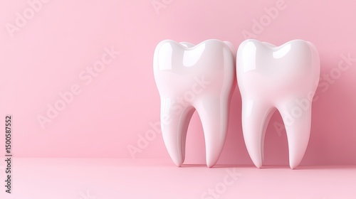 Two elegant teeth on a pink pastel studio with oral hygiene concept and orthodontics idea