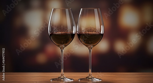 Two Elegant Wine Glasses Filled with Red Wine on Wooden Table