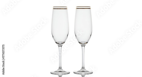 Two empty crystal flutes with delicate gold rim detail stand ready for celebration