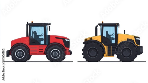 Two Farm Tractors Side-by-Side Illustration, Agricultural Equipment, Modern Design, Stock Photo