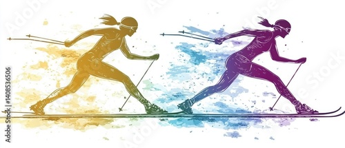 Two female cross-country skiers in motion.