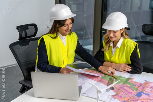 Two female engineers looking involved and excited while working together on the project
