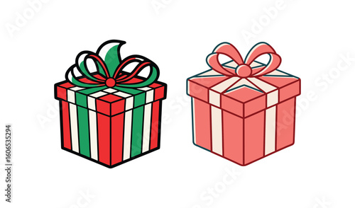 Two festive gift boxes with ribbons and bows hand drawn illustration