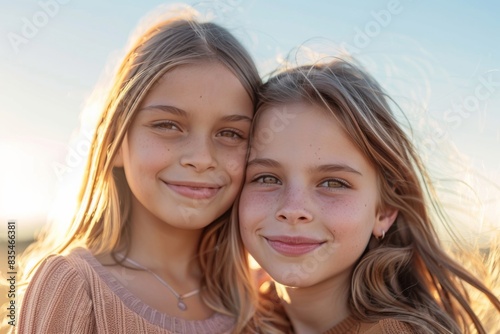 Two figures with their faces obscured enjoying a sunny day outside, with wind in their hair