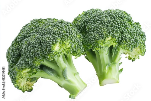 Two fresh broccoli heads, vibrant green, healthy