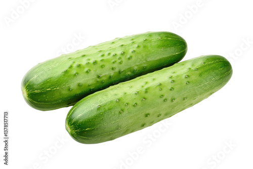 Two fresh green cucumbers on a white background, cut out